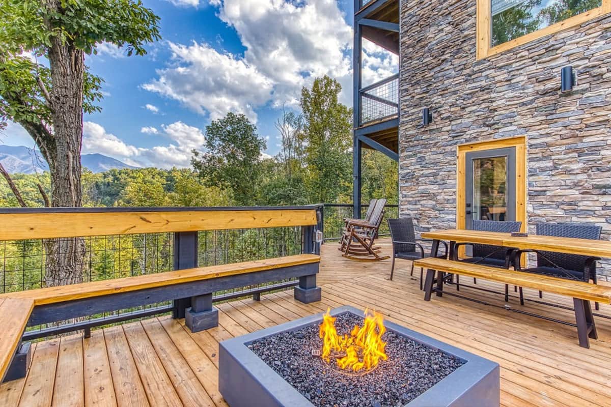 Newly built 3,400 sq. ft. luxury cabin with a spectacular view of Mt. LaConte. Spacious rooms and many amenities. Hot tub and fire pit with surrounding seating. Located minutes away from Downtown Gatlinburg, Pigeon Forge and Ober Gatlinburg. 2 story deck plus 2 higher level balconies with plenty of seating to enjoy the view.